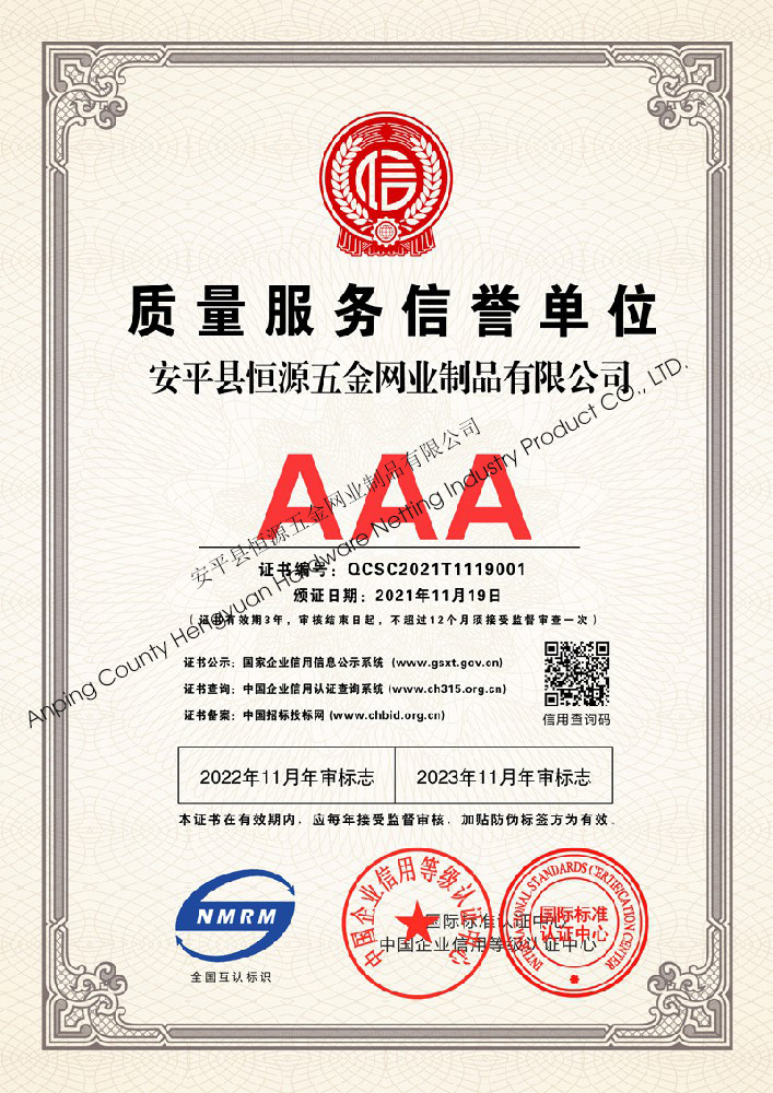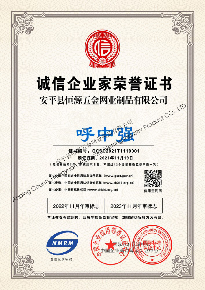 多年來,安平縣恒源五金網(wǎng)業(yè)制品有限公司堅持“科技興企、質(zhì)量立業(yè)”的經(jīng)營理念和“誠心為本、客戶至上”的合作宗旨,優(yōu)化生產(chǎn)工藝,打造優(yōu)質(zhì)產(chǎn)品,提供完善的服務,受到國內(nèi)外客戶的一致好評,產(chǎn)品行銷全國各地,并出口美國、德國、韓國、日本、臺灣等國家和地區(qū)。